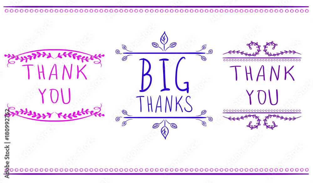 Thank You Card Templates Big Thanks Vector Handwritten Words Pink Purple And Blue Colors Stock Vector Adobe Stock